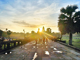 下午參觀【小吳哥寺】也叫吳哥窟(游覽時(shí)間約為100分鐘),與中國的萬里長城、印度的泰姬瑪哈陵、印度尼西亞婆羅浮屠,并稱東方四大建筑奇觀),【小吳哥日落】小吳哥有一道奇景,就是在太陽的照耀下,白天和傍晚會(huì)呈現(xiàn)不同的色彩,尤其以傍晚的景象最為迷人。整座建筑在陽光的籠罩下,展現(xiàn)出金碧輝煌,難怪來過的人都會(huì)稱之為「攝影者的天堂」。而在小吳哥的河塘前,日出更為動(dòng)人。蓮花池被朝陽勾勒出金邊,反照佛塔倒影;整個(gè)世界似乎變得份外安寧