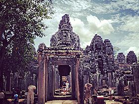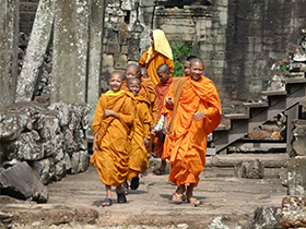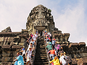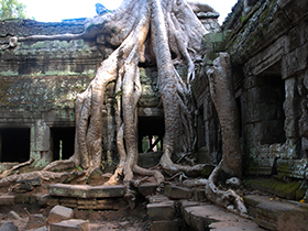 早餐后,游覽高棉王國古老的都城—大吳哥城:【巴戎廟】(游覽時(shí)間約為40分鐘)(巴戎廟它位于吳哥通王城的正中央,這些微笑的面容據(jù)說是加亞華曼七世與佛陀尊容的融合體)?!臼は瘛浚ㄓ斡[時(shí)間約為10分鐘),【斗象臺(tái)】(游覽時(shí)間約為10分鐘)(斗象臺(tái)規(guī)模很大,全是用巨石壘成的很大一片建筑,在過去是舉行慶典儀式的地方,也是皇族政要迎賓檢閱的地方)?!景捅緦m】最不能錯(cuò)過的是墻上精美的巴本式風(fēng)格浮雕,浮雕內(nèi)容和印度神話有關(guān),也有一些高棉人的日常生活片段,細(xì)膩的雕刻躍然于眼前。古墓麗影的拍攝基地——【塔普倫寺】(游覽時(shí)間約為60分鐘)(位于吳哥窟東部,始建于12世紀(jì)末,是賈亞瓦曼第七位國王為紀(jì)念他母親而建造,不過現(xiàn)在塔普倫寺帶給您更多的是樹抱石的那種奇觀。)
